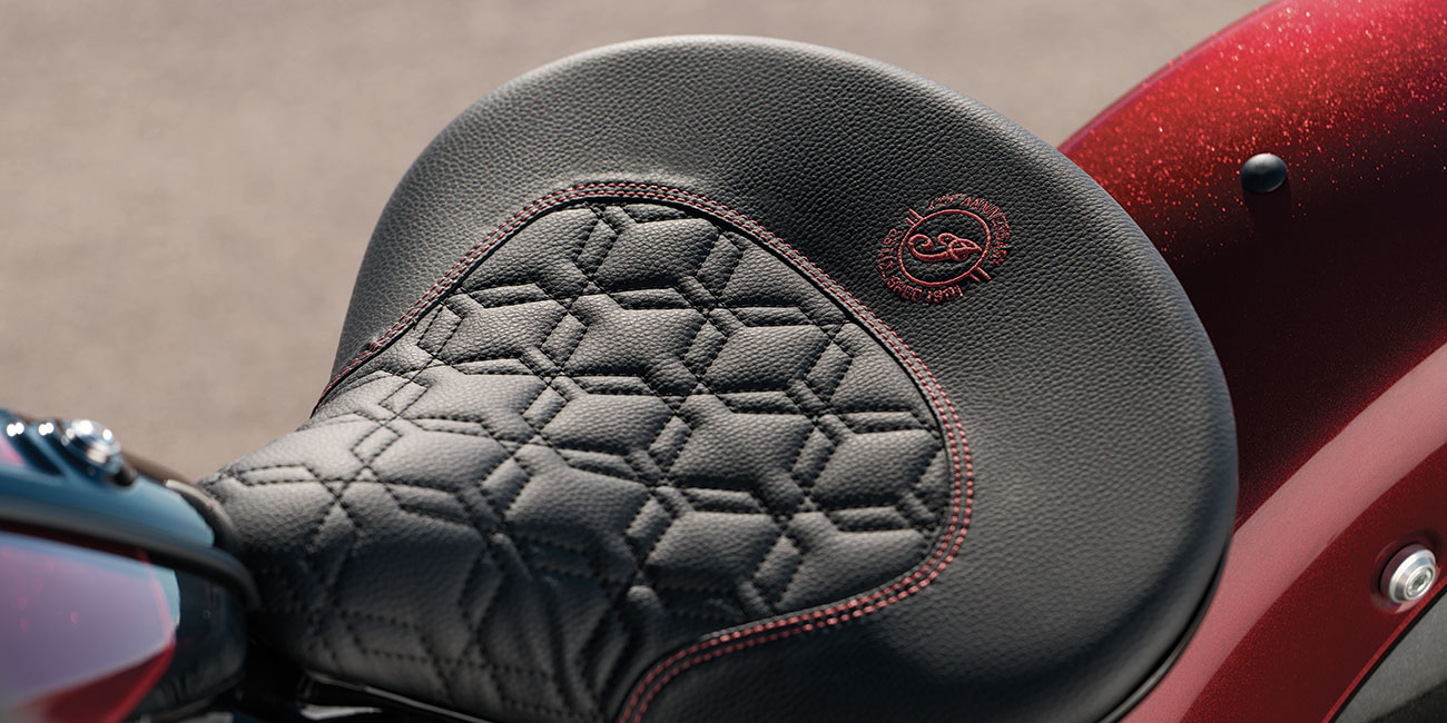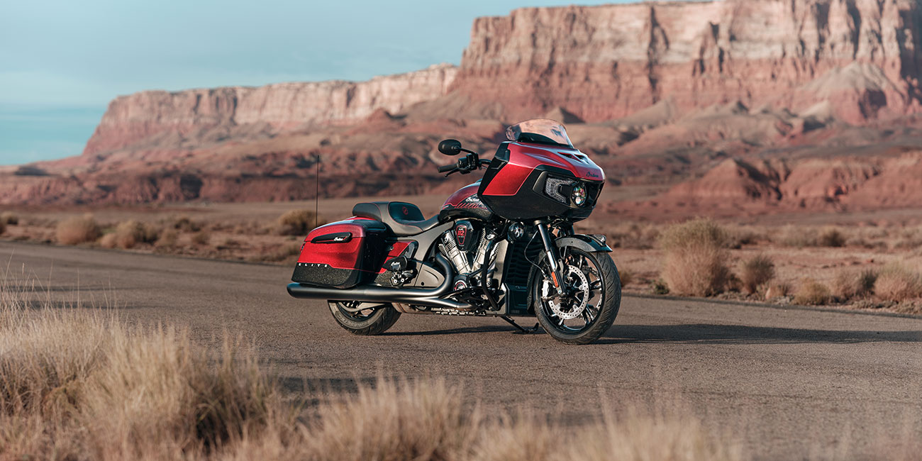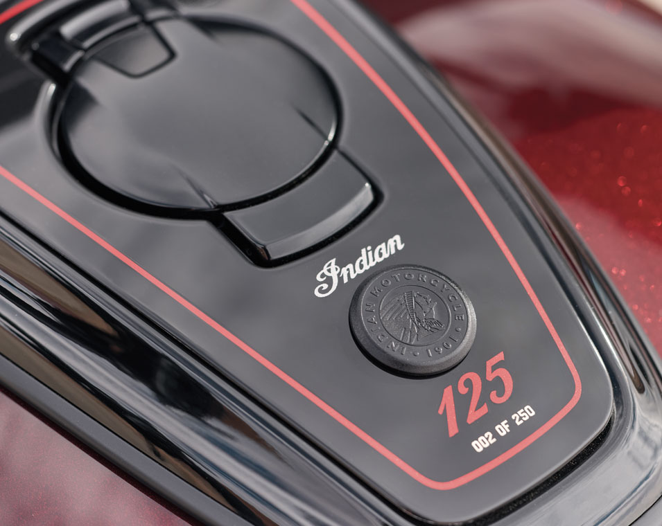 La Indian Challenger Edición 125.º Aniversario demuestra que el liderazgo en desempeño no es teórico: se comprueba a alta velocidad. Su carenado montado en el chasis, sus acabados en negro y el motor PowerPlus 112 de 112 pulgadas cúbicas, refrigerado por líquido, están realzados con detalles meticulosamente pintados a mano y emblemas del 125.º aniversario en toda la motocicleta.